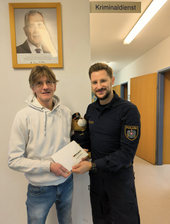 Die FCG-KdEÖ Bruck an der Leitha gratulierte zum Nachwuchs und überreichte die beliebten Polizeibären und einen Gutschein.
