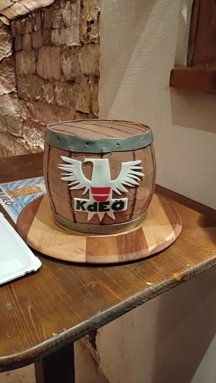 Dieses Jahr kam auch statt dem altgedienten Weinfass eine Weinfasstorte zum Anschnitt. Damit war auch gleich der süße „Guster“ gestillt.
